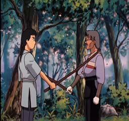grandfather practicing swordplay routines. Ayeka sees a startling resemblance to